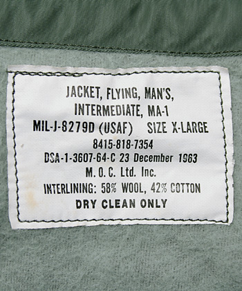■Item: 97年度版 USAF JACKET, FLYER'S MAN'S, INTERMEDIATE, MA-1 MIL-J-8279D(USAF)