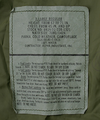 ■制式名称:PARKA, COLD WEATHER, CAMOUFLAGE