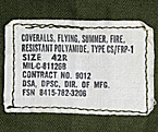 ■制式名称:COVERALLS, FLYING, SUMMER, FIRE RESISTANT POLYAMIDE, TYPE CS/FRP-1