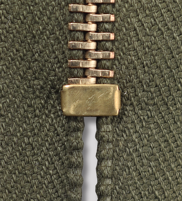 1970-71年、ジッパーはアルミからブラスに仕様変更された。実物Scovillスライダー(M72)を用い復刻されたM65 3rd Model襟裏用Zipper、限定数量の製作販売です! !