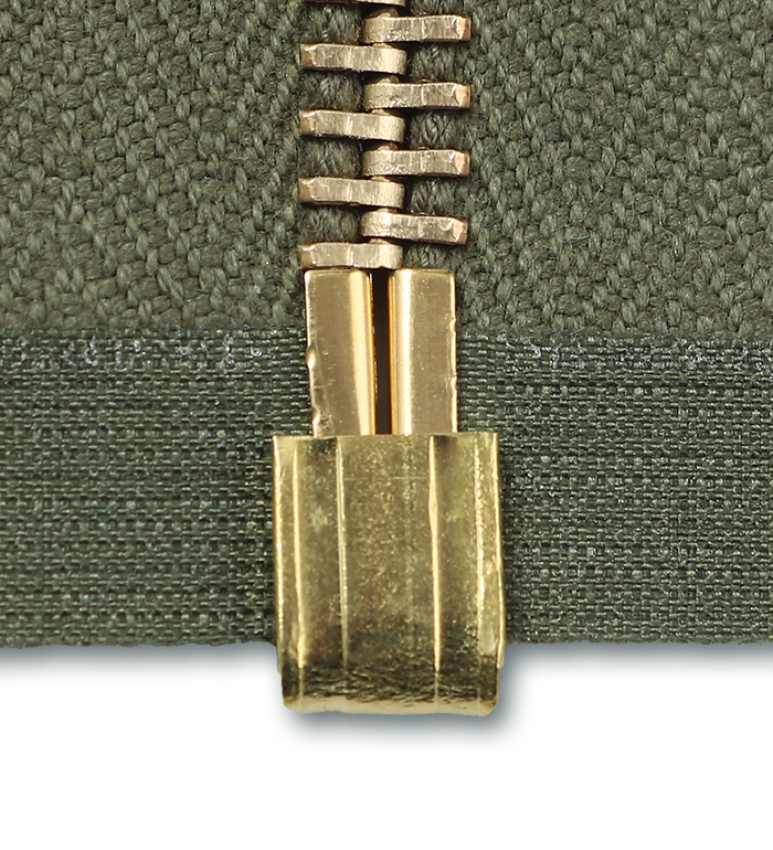 Scovill, 70s, #5, ブラス、オリーブグリーン, インターロック、オープンエンド Zipper(実物スライダー使用), 62cm、/復刻(M.O.C.)・新品