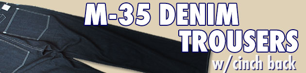 US ARMY M-35デニムトラウザーズ、シンチバック(Cinch Back)付きモデル