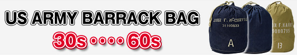 | 10.5ozミリタリーデニム生地で製作された『Barrack Bag』が米軍で採用されたのは1937年。真鍮製のEyelet(ハトメ)がドローコードの引き出し口に使用されたのは1941年契約モデルからと考えられる。1941年キャンバス製『ダッフルバッグ』が採用されて以降はデニム生地製『Barrack Bag』は主として洗濯物収納用の『ランドリーバッグ』として使用された。又、米軍は『ダッフルバッグ』採用と同時期に厚手コットン生地(カーキ色又はOD色)製『Bag, Barrack, od』を採用、支給を開始した。以下は米軍“Barrack Bag”の変遷(わかる範囲内での)紹介です。 |