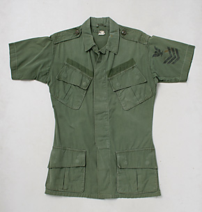 NAM戦時、米軍におけるコットンポプリン素材製熱帯地用野戦服。通称『ジャングルファティーグ』。その中期(2nd)モデルのジャケット。袖を半袖に、身幅も含め若干の直しあり。実物極上品。