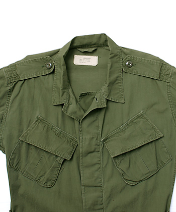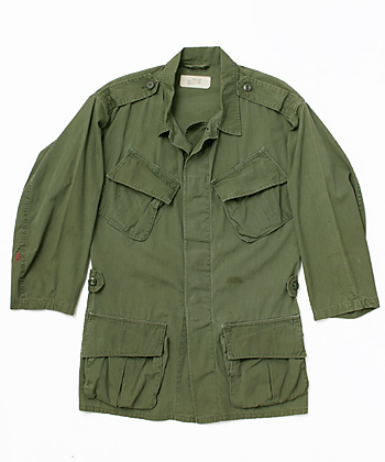 NAM戦時、米軍におけるコットンポプリン素材製熱帯地用野戦服。通称『ジャングルファティーグ』。その中期(2nd)モデルのジャケット。袖を7分袖に、身幅も含め若干の直しあり。実物極上品。