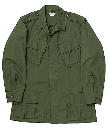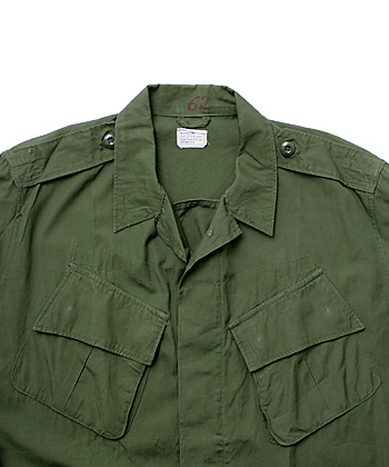 NAM戦時、米軍におけるコットンポプリン素材製熱帯地用野戦服。通称『ジャングルファティーグ』。その中期(2nd)モデルのジャケット。各ポケットのボタン(ツヤあり)が隠しとなった事が初期(1st)モデルとの最大の相違点。実物極上品。