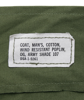 ■制式名称:COAT, MAN'S, COTTON, WIND RESISTANT POPLIN, OG, ARMY SHADE 107