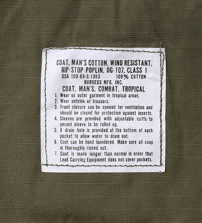 ■制式名称:COAT, MAN'S, COTTON, WIND RESISTANT, RIP-STOP POPLIN, OG-107, CLASS 1