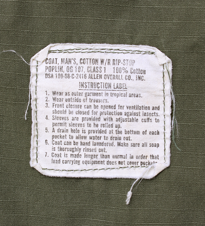 ■制式名称:COAT, MAN'S, COTTON, W/R, RIP-STOP POPLIN, OG-107, CLASS 1
