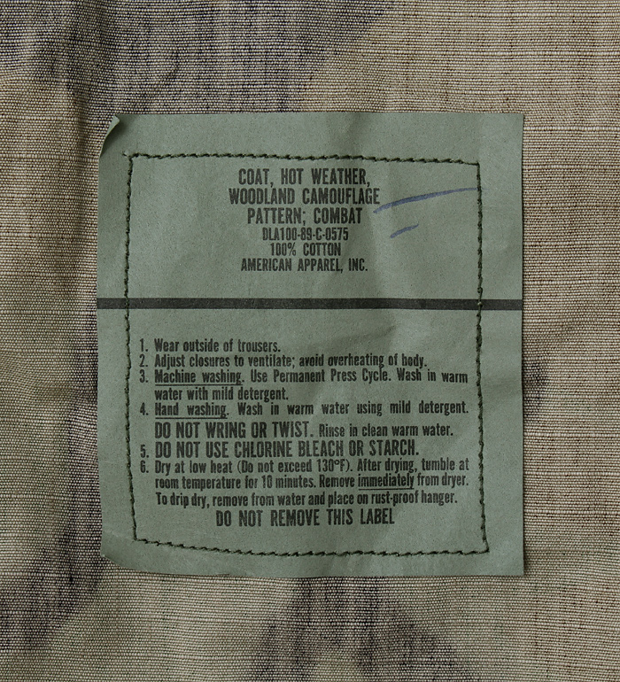■制式名称:COAT, HOT WEATHER, WOODLAND, CAMOUFLAGE PATTERN; COMBAT