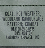■制式名称:COAT, HOT WEATHER, WOODLAND, CAMOUFLAGE PATTERN, COMBAT