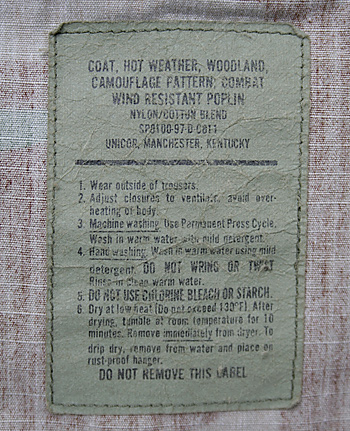 ■制式名称:COAT, HOT WEATHER, WOODLAND, CAMOUFLAGE PATTERN, COMBAT
