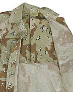 通称「チョコチップ」と呼ばれる米軍の初代デザートカモ柄のBDUジャケット。N/R(ノンリップ)生地タイプ。1980年代のデッドストック品。