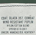 生地:コントラクトの違いにより100%コットン又は50%ナイロン/50%コットンの二種あり。共にR/S(リップ・ストップ)