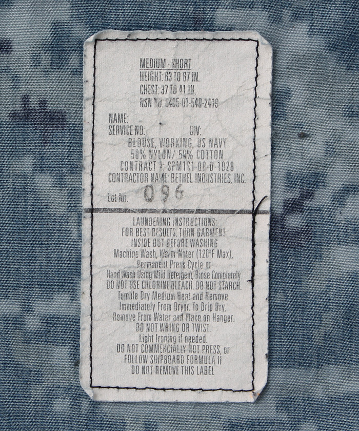 注)実物生地のみに許されたUS NAVYロゴマーク入り/画像参照