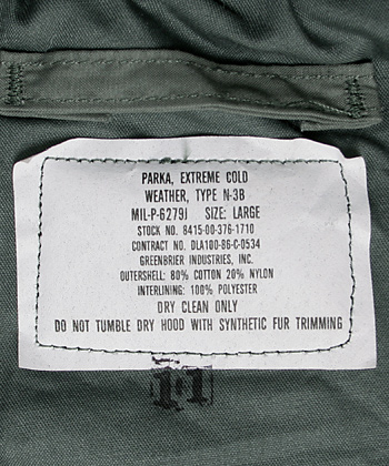 ■制式名称:PARKA, EXTREME COLD WEATHER, TYPE N-3B