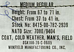 ●正式名称:COAT, COLD WEATHER, MAN'S, FIELD