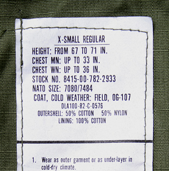 ■制式名称:COAT, COLD WEATHER; FIELD, OG-107