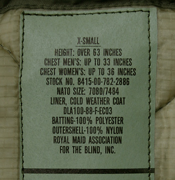 ご案内は一度も使用されずに放出に至った実物・未使用品であり、実物軍物の中にあってはこれ以上のコンディションの物は望むべくもありませんが、軍倉庫で20年を越え保管されてきた関係上、使用に差し支え無い範囲においての僅かな保管汚れがある事、及び米軍の検品において問題無しとされる些細な織りキズ等に関しては、米軍同様、通常品として販売させて頂きますこと、併せてのご理解ご了承お願い申し上げます。