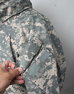米陸軍最新ACUカモのゴアテックス・パーカー。形式は従来のウッドランドカモタイプで言うところの2nd Gen.型(フード収納式、ラージサイズポケット)。2005年コントラクト品。実物・未使用放出品。