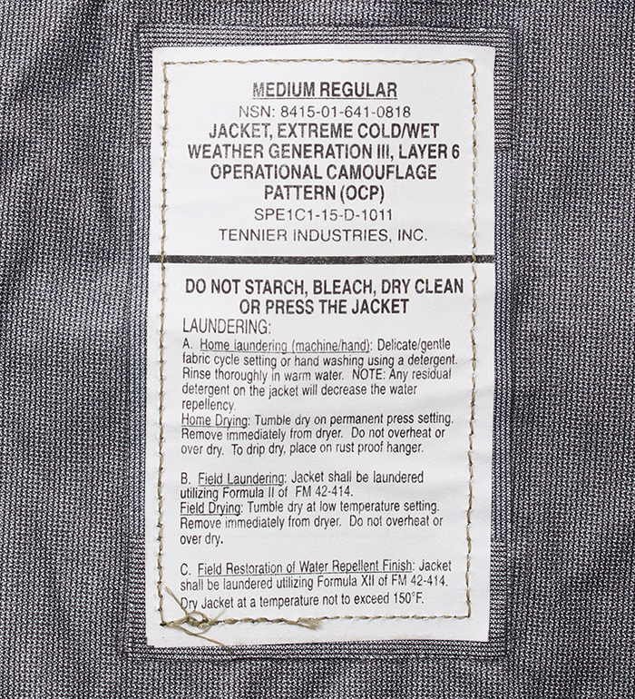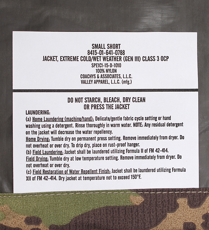 ■制式名称 (S-S & L-R):Jacket, Extreme Cold/Wet Weather Generation III, Class 3 (OCP)