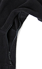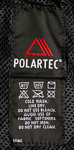 ●左側内ポケット上:素材(POLARTEC)及び取り扱い表示ラベル(黒)/右上画像参照