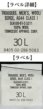 ■制式名称:TROUSERS, MEN'S, WOOL SERGE, AG-44, CLASS 1