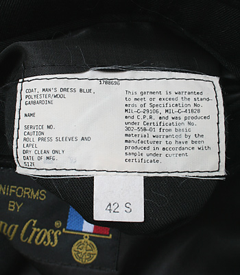 ■制式名称:COAT, MAN'S DRESS BLUE, POLYESTER/WOOL GABARDINE
