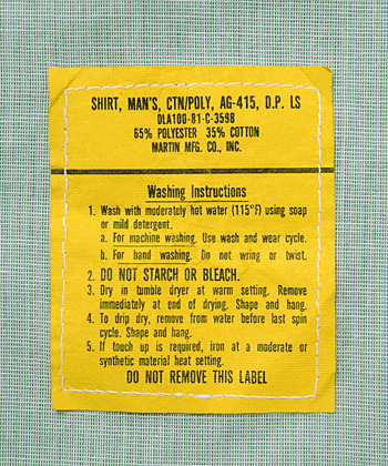 ●制式名称:SHIRT, MAN'S, LONG SLEEVE POLYESTER/COTTON ARMY GREEN 415, DURABLE PRESS