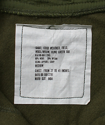 ■制式名称:SHIRT, COLD WEATHER, FIELD, WOOL/NYLON, OLIVE GREEN 108