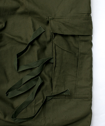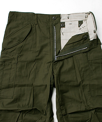 米軍において1965年にM-65ジャケットと共に採用されたフィールド・パンツ。本来、防寒用で、極寒時にはライナーを取り付ける為、ファティーグパンツ、BDUパンツより太めのシルエット。フロントジッパーアルミタイプ。1968年コントラクトの実物未使用デッドストック放出品。