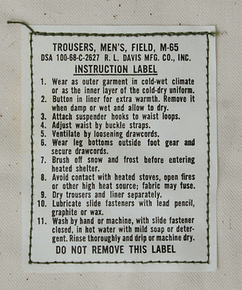 ■制式名称:TROUSERS, MEN'S, FIELD, M-65