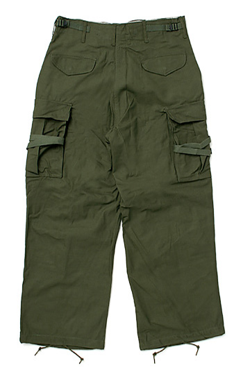 米軍において1965年にM-65ジャケットと共に採用されたフィールド・パンツ。本来、防寒用で、極寒時にはライナーを取り付ける為、ファティーグパンツ、BDUパンツより太めのシルエット。フロントジッパーアルミタイプ。1968年コントラクトの実物未使用デッドストック放出品。