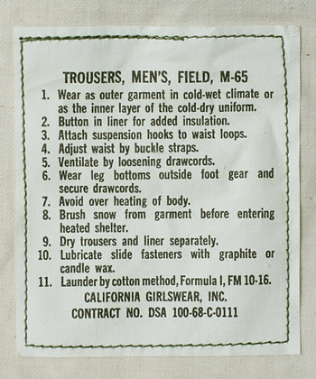 ■制式名称:TROUSERS, MEN'S, FIELD, M-65