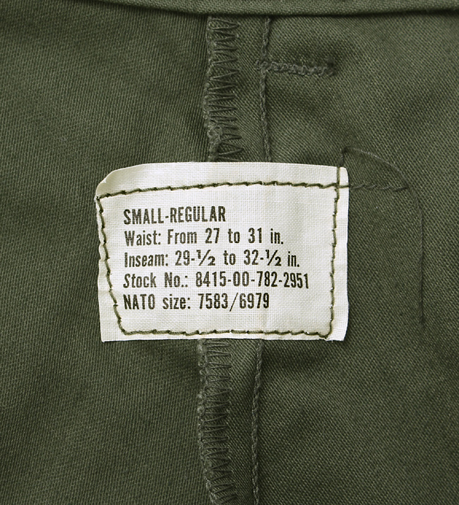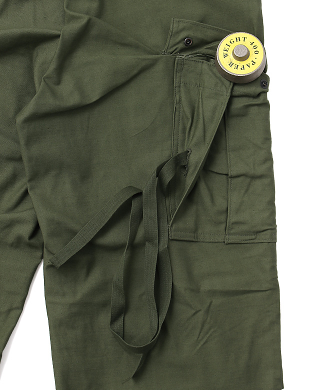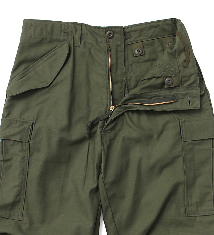 1965年、M-65フィールドジャケットと共に採用された冬季防寒フィールドパンツ。極寒時にはライナーを取り付ける為、ファティーグパンツ、BDUパンツより太めのシルエット。ブラス(真鍮)ジッパー使用タイプ。実物未使用、デッドストック放出品! !