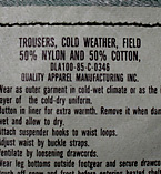 ■制式名称:TROUSERS, COLD WEATHER,FIELD 50% NYLON AND 50% COTTON