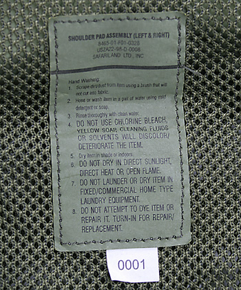 ・パウチ類の基本取り付け:MOLLEシステム同様のPALS(Pouch Attachment Ladder System)式と呼ばれる、ドットボタン付きのナイロンストラップをベスト等に縫いつけられたストラップに交互に通し装着。従ってMOLLE装備も同様に装着可能です。