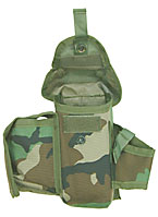 ベスト等への装着方法はMOLLEシステム同様新開発のPALS(Pouch Attachment Ladder System)でベスト側の横に走る2.5cm幅のアタッチメントテープにパウチ側縦テープ(左上画像参照)を通して取り付けます。 従って本パウチはMOLLE装備にも同様に装着可能で、また単独で現行のピストルベルトにも装着、使用出来ます。