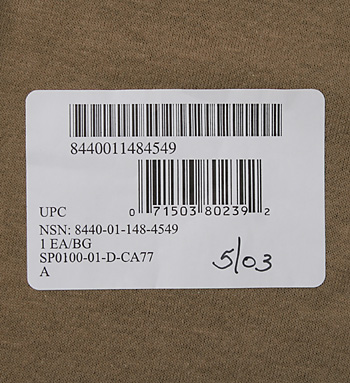 ご案内は一度も使用されずに放出に至った実物・未使用品であり、実物放出品の中にあってはこれ以上のコンディションの物は望むべくもありませんが、軍での保管、管理状況により使用に差し支え無い範囲においての些細な保管汚れ等、又、米軍検定で問題無しとされる織りキズ等がある事は予めのご理解ご了承、願います。