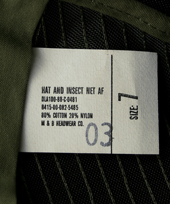 80年代末、米空軍において採用、支給されていた熱帯地用ハット。同包のインセクト ネット付。実物・未使用デッドストック品。