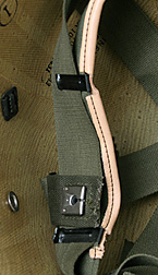 米軍M1ヘルメット用ライナーの内側に装着され、接頭面に本革が縫い付けられた着脱式ヘルメットバンド、NAM戦同型。実物未使用、放出品! !