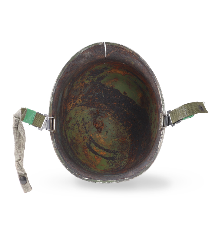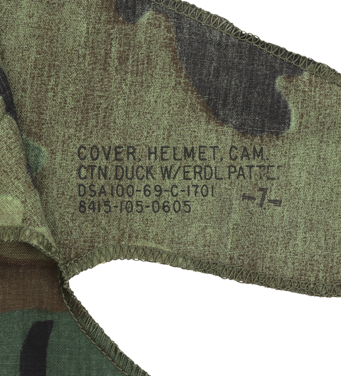 US(米軍) 70-80s M-1スティール ヘルメットセット/ERDLカモカバー(DSA-69)/ライナー&ヘルメットバンド(複製品)/実物・極上