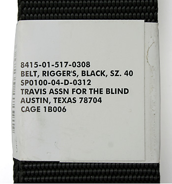 本来は帆船の乗務員(Rigger)が使用する頑強なウエビングに由来し、特殊部隊隊員達が強靱かつ緊急時のラペリングに使用可能な事から好んで戦闘ズボンに使用し、以来、民間でも多種多様のタイプが製造販売されているようだが、米軍純正のリガーズベルト(Rigger's Belt)はこのタイプのみである。