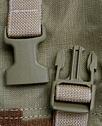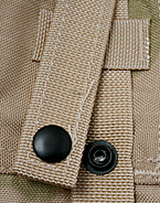 ●背面:MOLLE各システムへの装着用テープシステム(PALS式/右上画像参照)の縫い付けあり/中央画像中、下段部・右上画像(詳細)参照