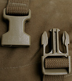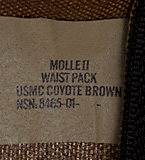 米海兵隊において、現在、装備類の標準カラーでもある『コヨーテ・ブラウン』色の『MOLLE II』ウェスト・パック。コーデュラナイロン製。