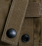 ●背面:MOLLE各システムへの装着用テープシステム(PALS式/右上画像参照)の縫い付けあり/中央画像中、下段部参照