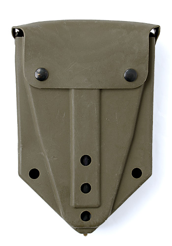 三つ折りスコップ(U.S.刻印入り、75-03年製。)とOD色の専用ケース(80-04年製。)のセット。スコップ&ケースの組み合わせ(製造年)若干のずれあり。実物USED放出品。