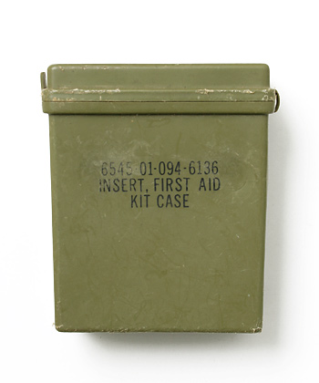 個人携行用ファーストエイド類を収納するプラスチック製ケース&ナイロン製パウチの2点セット。現用ロングタイプ。実物USED放出品
