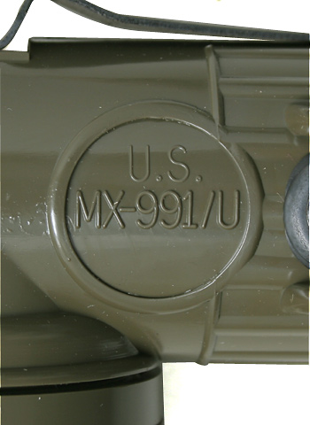 米軍、L型 フラッシュライト(MX-991/U)、ODカラー、誤作動防止スイッチガード付。米軍納入メーカーFULTON社製新品。