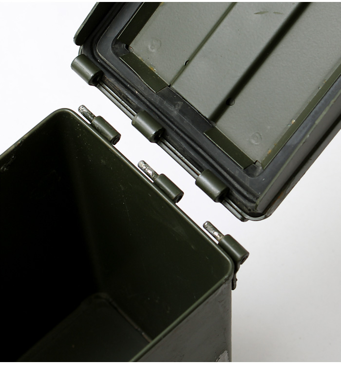 注)この型式の弾薬箱は、主として戦場での『30 Cal(7.62mm)弾』小分け収納、持ち運び用として使用され、ミリタリー業界ではこのサイズを総称して『30 Cal Ammo Can/Box』と呼ばれることが多い。